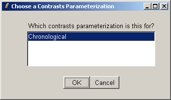 Define contrasts, either using the drop-down combo-boxes, or by clicking "Advanced" and either manually entering a contrasts matrix or loading one from a tab-delimited text file.