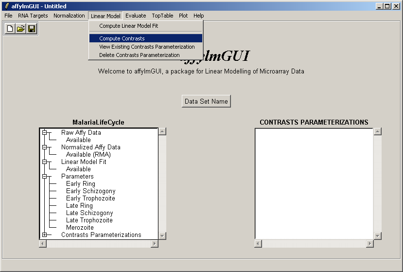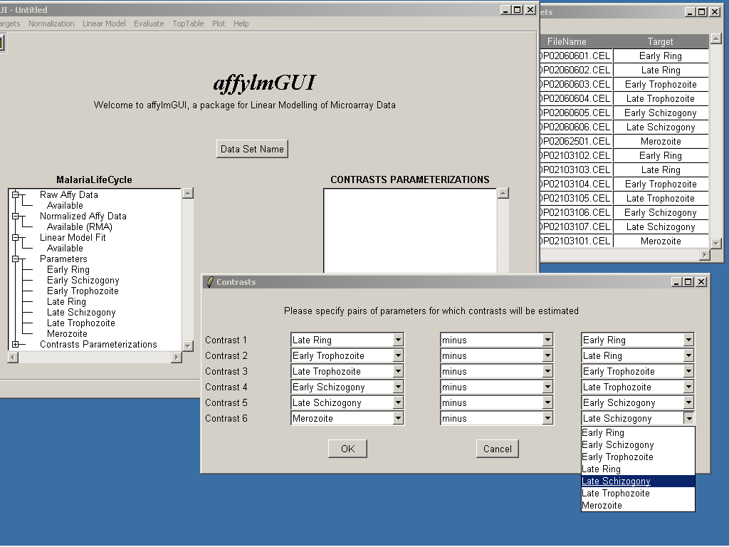 Analyzing the Malaria Life-Cycle Data in affylmGUI