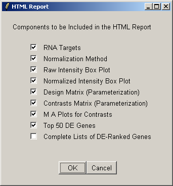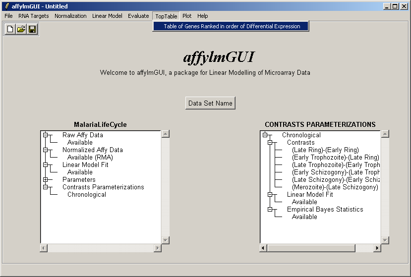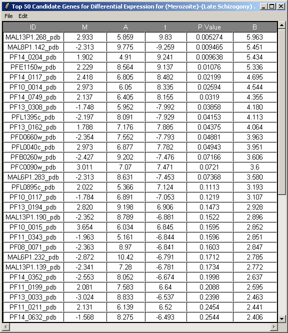 Select "Table of Genes Ranked in order of Differential Expression" from the "TopTable" menu.