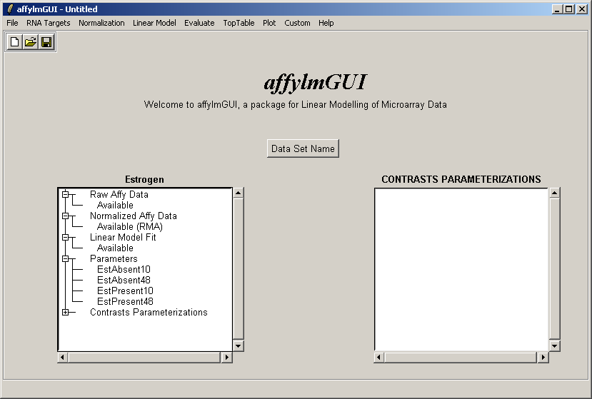 After the data has been loaded the left status window is updated in the main affylmGUI window.