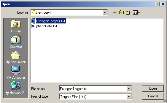 Now click on the "Open Targets file" button to open the targets file for the estrogen data.