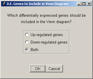 Select both up-regulated and down-regulated genes to be included in the sets in the Venn diagram.
