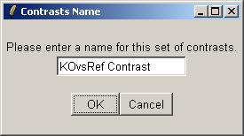 The interface for choosing contrast(s) is similar to the interface for choosing parameters for the linear model. You can click on the "Advanced" button if you want to enter a contrasts matrix directly. One difference is that in the simpler (non-matrix) interface, the user is allowed to use "plus" or "minus" to form a linear combination of two parameters, whereas the interface for choosing parameters only allowed a "minus" between the two RNA types. In this case we will add our two parameters to form the contrast KOvsRef.