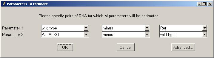 Again, parameterization "WTvsRef and KOvsWT" is the only choice, so click OK.